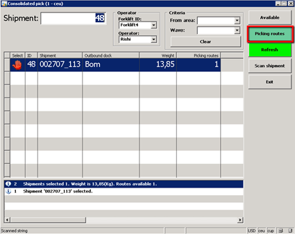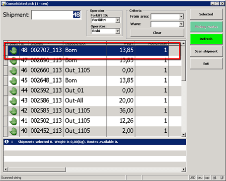 Forklift person will be working on his forklift menu and will looking in the consolidated picking list.