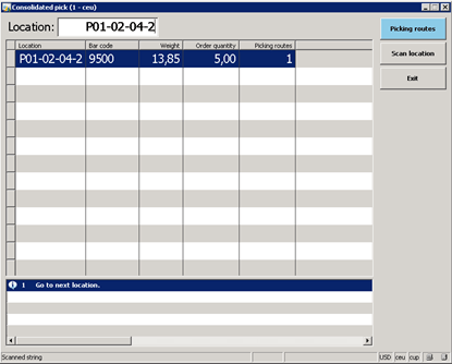 Select Picking route and Scan Location