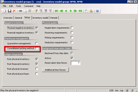 Selecting “Consolidated picking method” for Inventory model group will use shipments and picking of multiple orders as the mechanism.