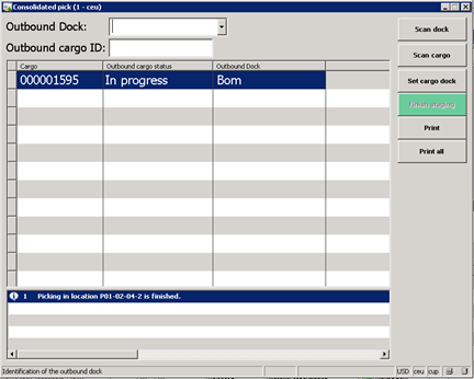 After finishing with scanning of the items, scan the outbound cargo which will be used to ship the goods. Scanning the Cargo will change the Production Pick Status to “Picked“.