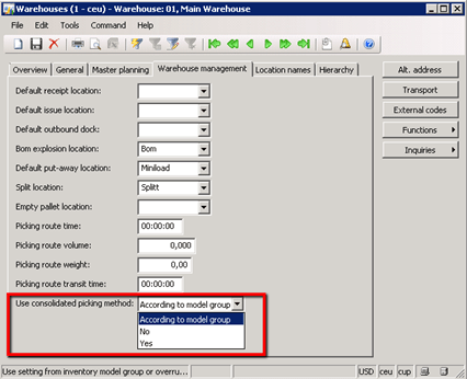 The setting can be overruled by Warehouse Item as consolidated picking might be or might not be required.