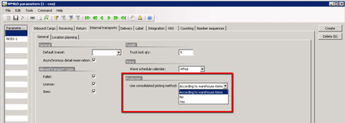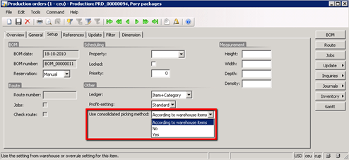 Production order could overwrite all setup for consolidated pickup in Setup tab which is initially setup as per the default setup of WM&D.