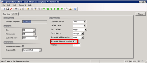 To setup shipment template, following are the pre-requisites as per standards AX, please look in the Standard Ax for further details.