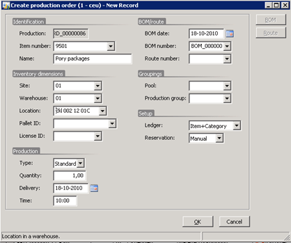 Production Order – Create Production Order