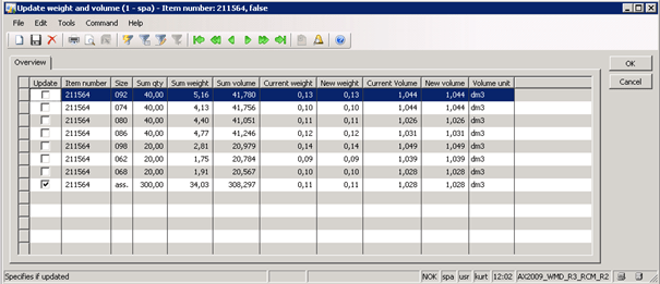Since WM&D can automatically record volume and weight of every inbound cargo, this information can be used to automatically populate the average weight and item volume. In std. AX weight and volume is properties on items, while on WM&D you can find these data also on the sizes. (note : Having it on inventDimCombination would be better, I agree)