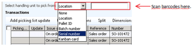 Pay specially attention to the field at the top. Here Microsoft has added a field to scan inventory dimensions. Like location, serial, batch and kanbans.
