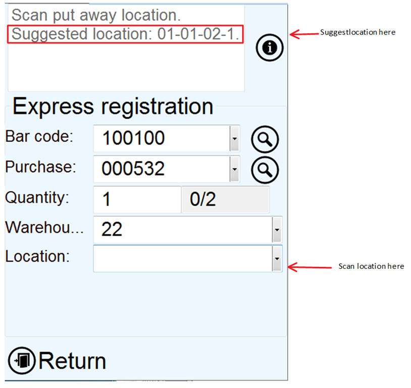 So in the PDA, I implemented a way to suggest put-away locations to the warehouse operator, that works without pallets.