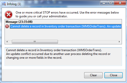 The reason for this, it that deleting a output order will also trigger a delete on the inventory order transaction (WMSOrderTrans). And this delete will again try to delete the original output order(WMSOrder).