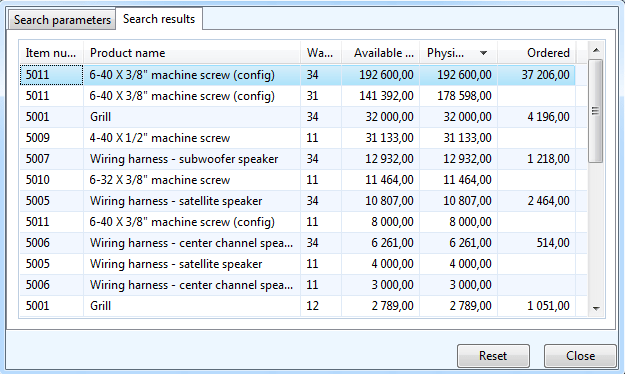 If I then click on the tab “search results”, I see the items (With on-hand values)