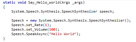 I was playing around on some with some of the classes, and I found a small thing that I wanted to share with the community. How to enable the speech synthesizer in Dynamics AX 2012. (This is the core essence of the “virtual burger” demo)
