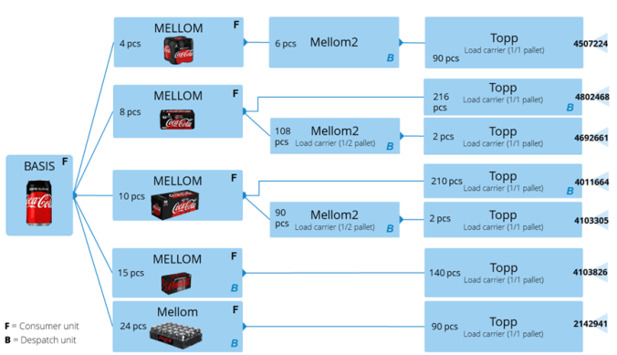 • The model here is exactly what is used in the Norwegian grocery industry. What is important is that it is describing the packing structure, and each level can be a UoM conversion or a new BOM structure. Within a EPD only one level can be the procurement level, and there may be multiple sellable levels. The