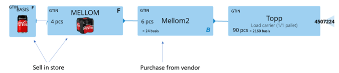 • A product can be a mix of multiple «basis» or «mellom/innerbox» units