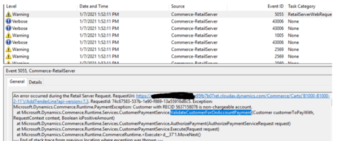 at Microsoft.Dynamics.Commerce.Runtime.Services.CustomerPaymentService.ValidateCustomerForOnAccountPayment(Customer customerToPayWith, RequestContext context, Boolean isPositiveAmount)