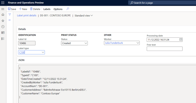 This very small extension gives us the ability to generate the necessary data that can be sent to the label printing webservice. It can also be a candidate to completely replace the standard label printing made available in in WMS module, and further enhance the ability to generate labels all over Dynamics 365. There is also a very simplified API, that allows for label printing to be automatically executed at certain steps. Like in WMS Wave Steps, so that when an action in the WMS mobile is performed, then the label is printed. This way of dealing with labels could also easily to extended to other scenario’s like commerce/POS. Or to generate customer return labels in eCommerce. The possibilities are endless. And as the F&O code basically just are building a JSON to be sent to a web-service the tool can also be used for other labeling software or other 3’rd party tools.
