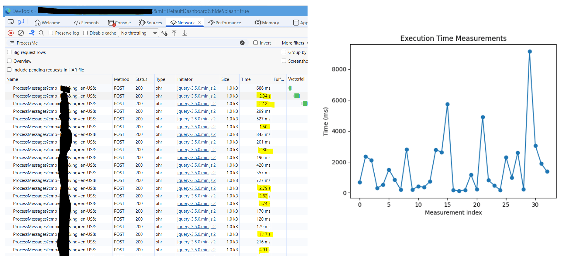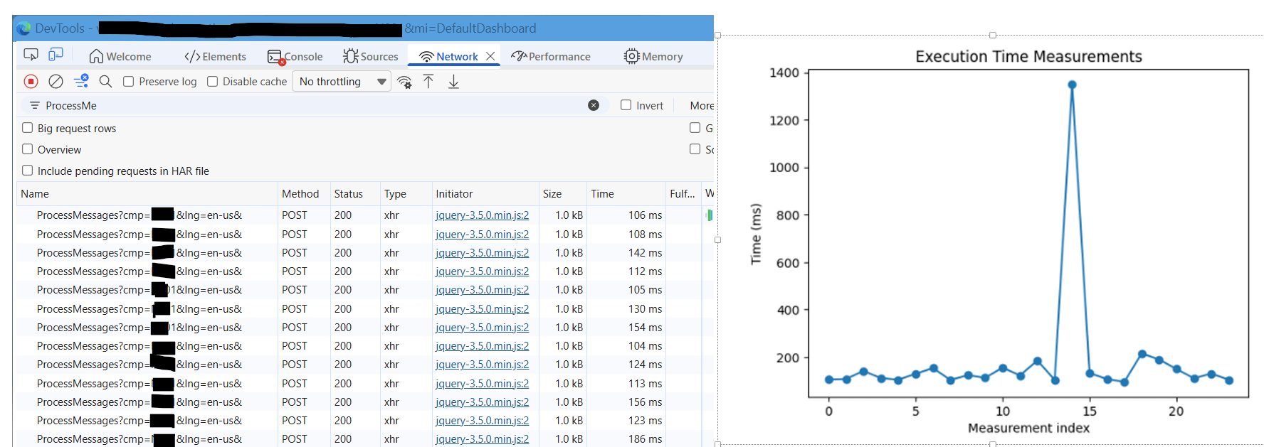 Then you click “F12” to open the DevTools, and filter on “ProcessMe”.