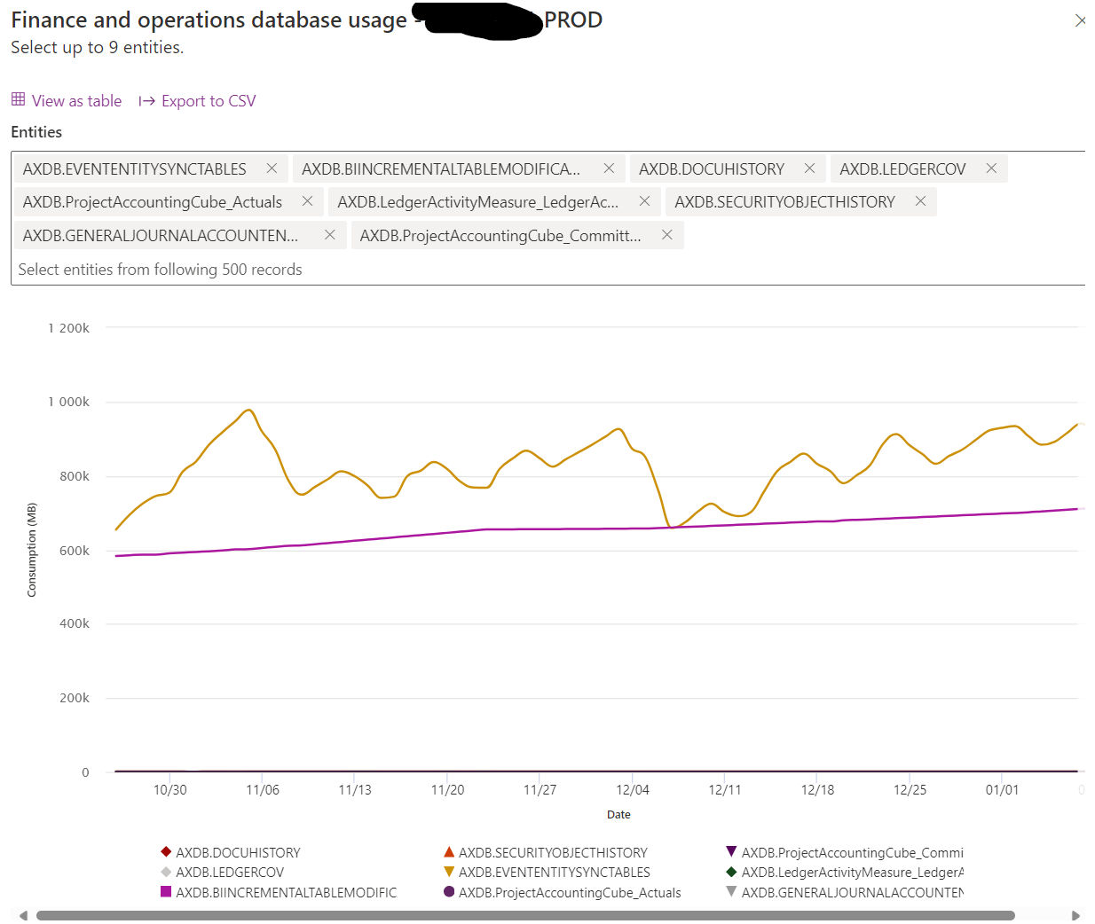 At one customer they took : AXDB.PERF_INVENTDIM_INVENTSUM 106.74 GB AXDB.PERF_INVENTDIM_WHSINVENTRESERVE 96.33 GB