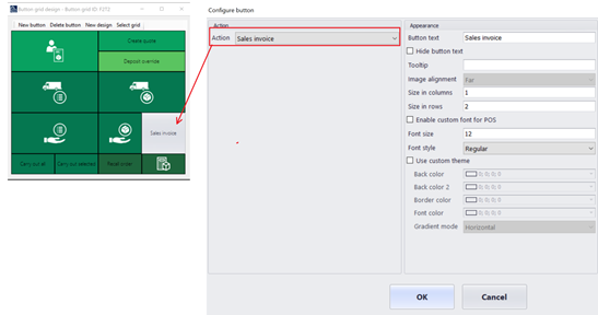 The next thing you need to do is to add a “Sales invoice” – button to the transaction screen. (I’m using Houston store, and button grid F2T2)