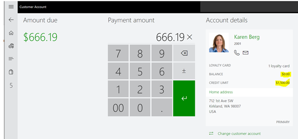 On the payment screen you can say how much you would like to put on account, and you also see that the credit limit and balance is available.