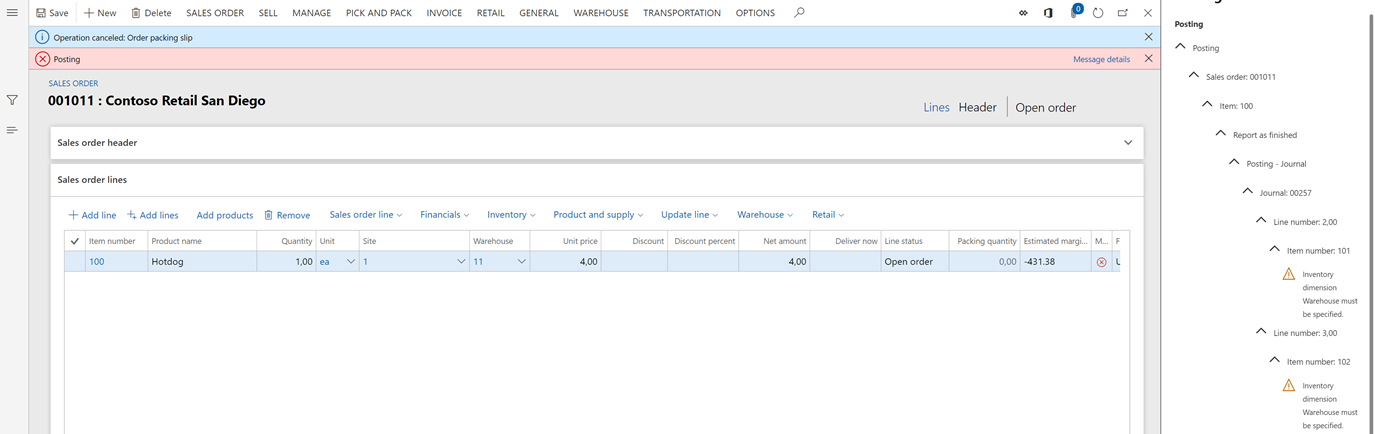 3. Run the “Post statement” (This process will create the sales order and the invoice)