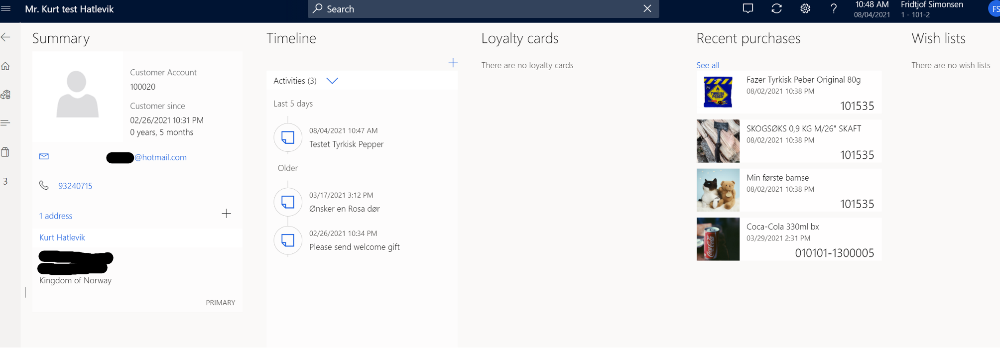The next thing is to create a POS transaction/order. First select a customer (like Karen), and then use the on-account button to sell the goods.