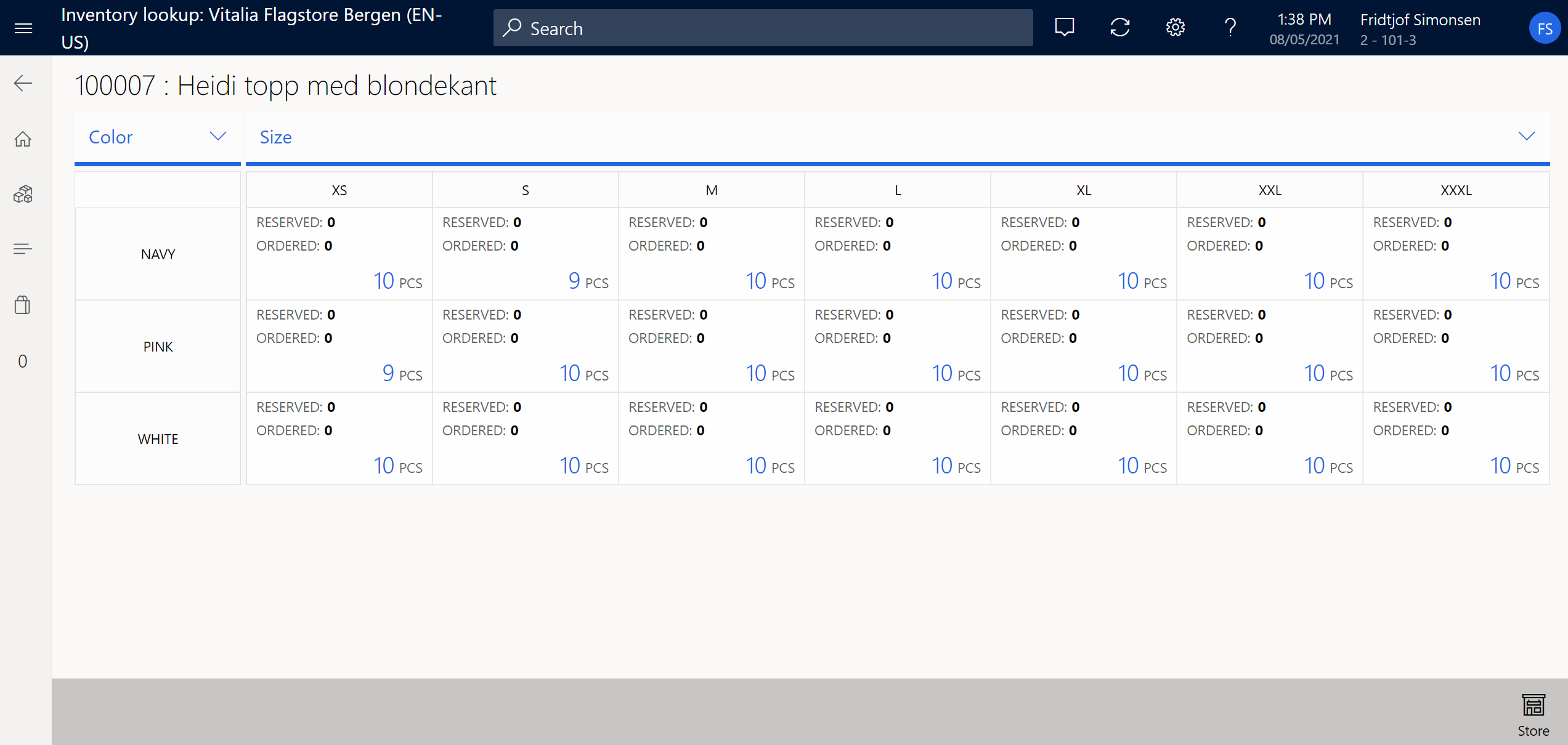 where store.inventlocation == inventdim.InventLocationId