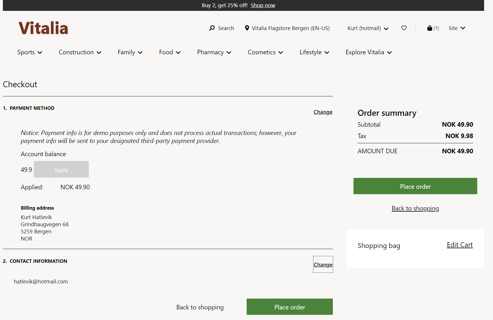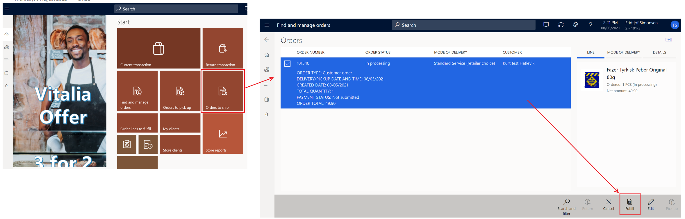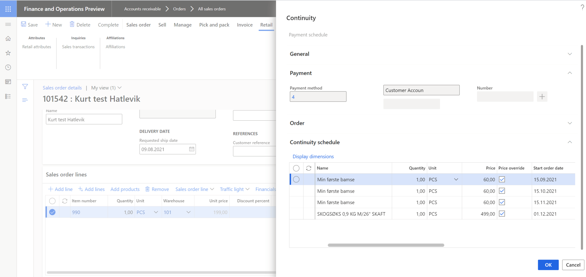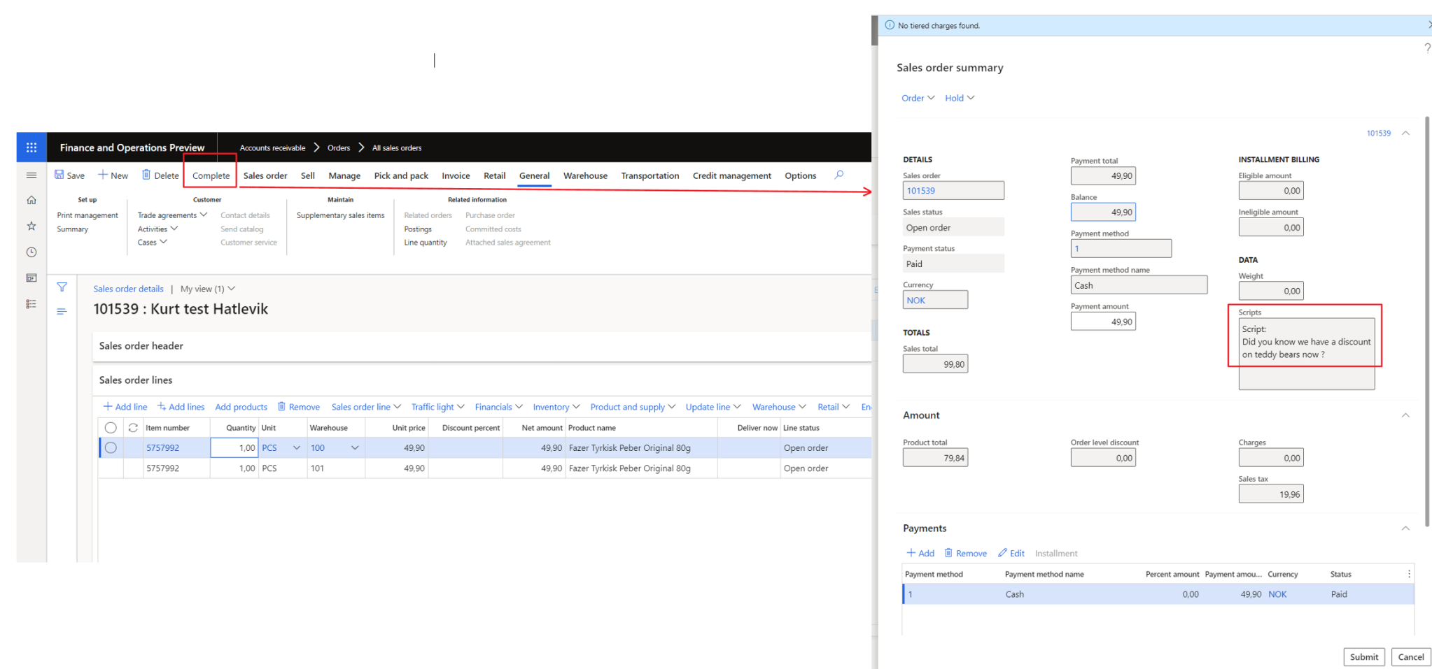 The option you now have is to continue to the process in Dynamics 365, and create an automatic sending of the invoice to the customer through print management, or have the customer come to the “reception” and pay for the goods directly.