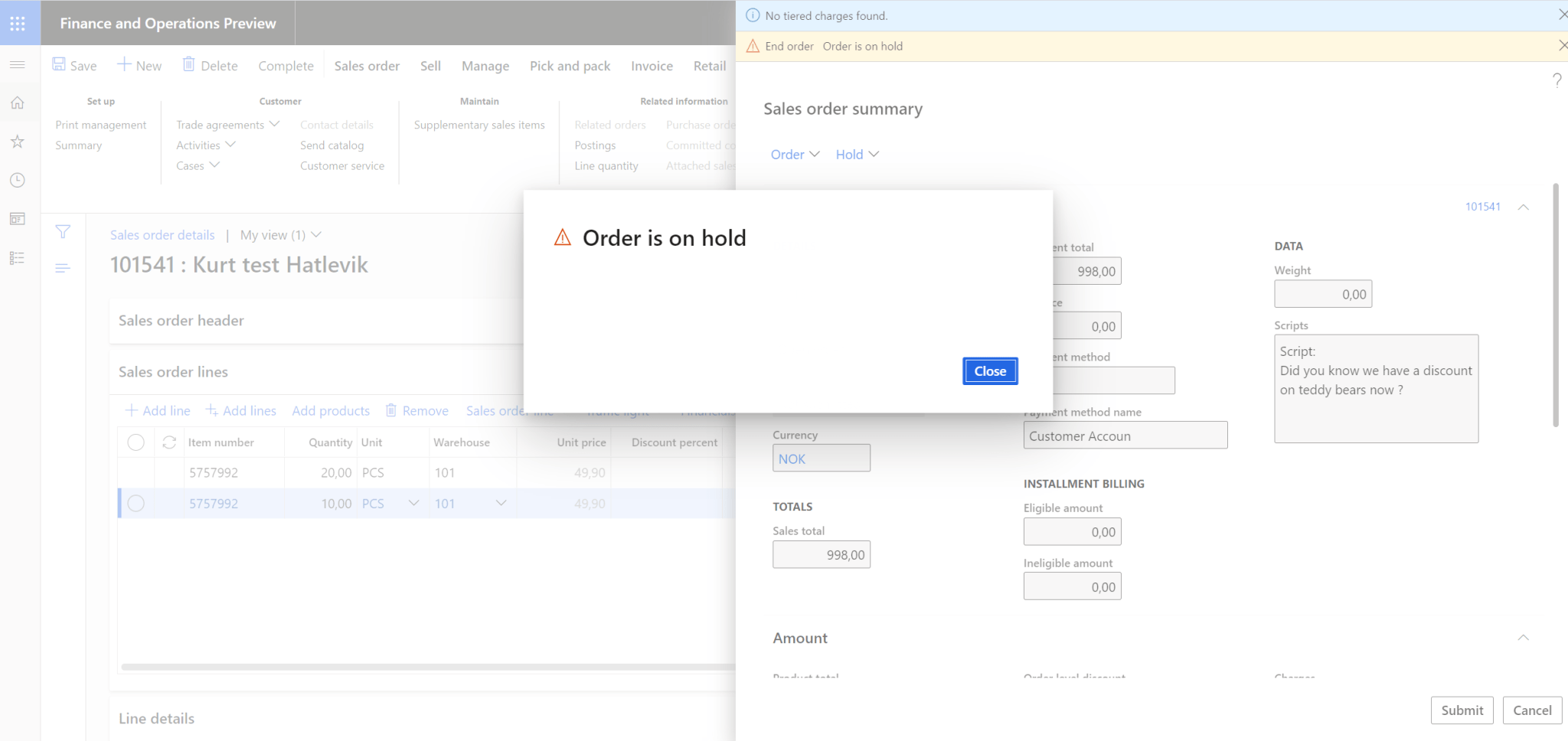 Sales order credit note