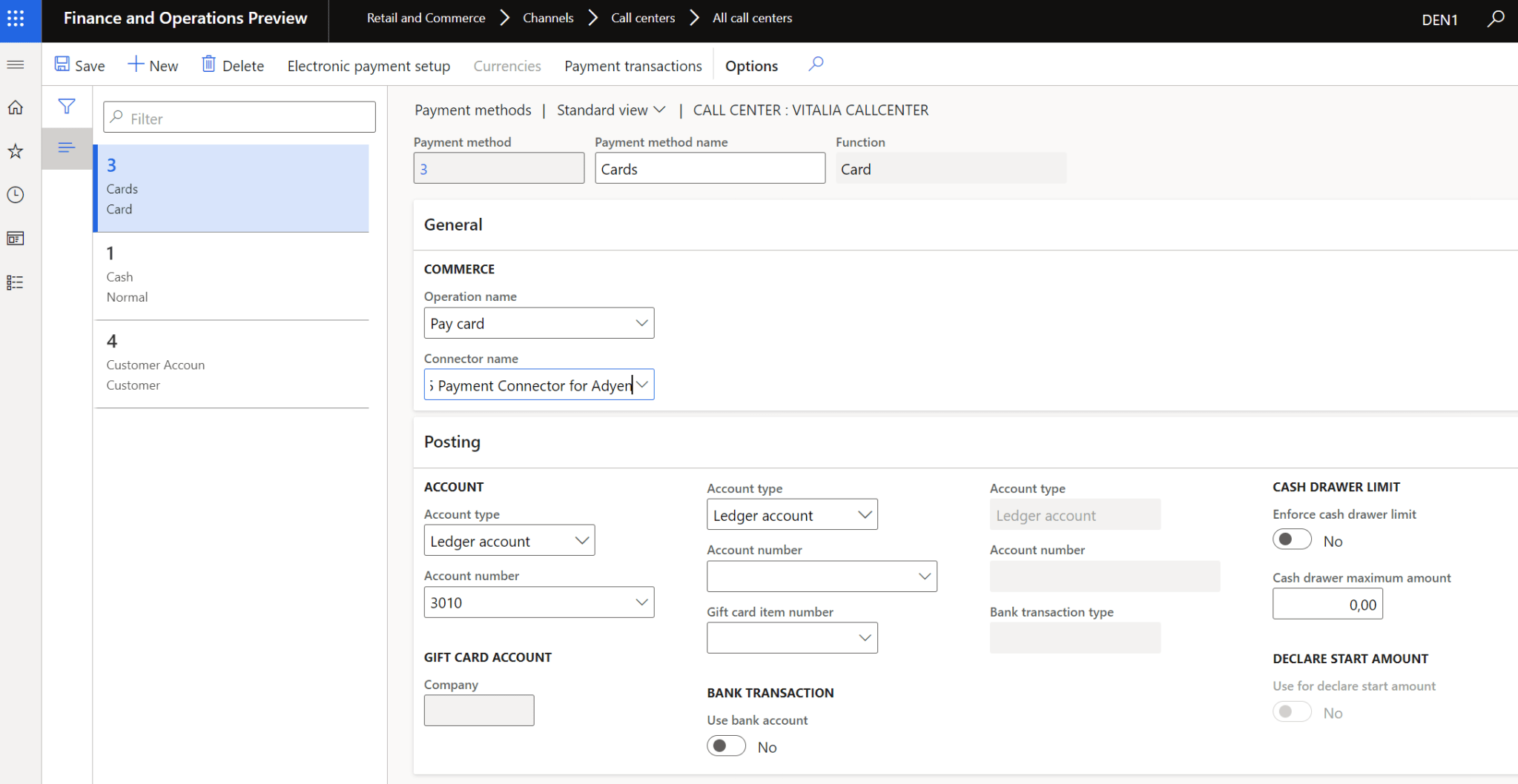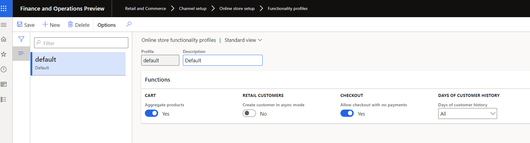There is no requirement that the goods have to be sold on a POS. It is fully omnichannel capable. So, the orders can be created in the call-center, WEB or in stores. I would like to share this with you and how you can set it up in the Contoso demo data set. If you open the functionality profiles, you will find the possibility to enable paying: